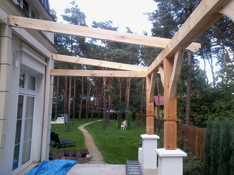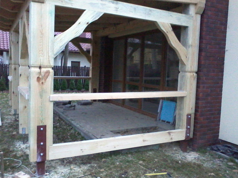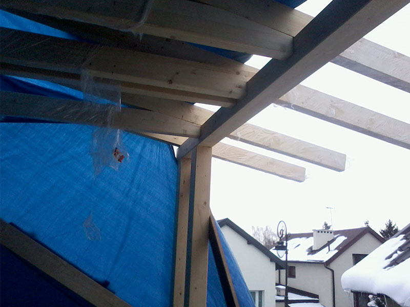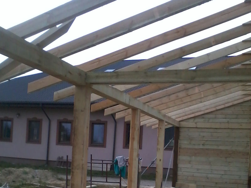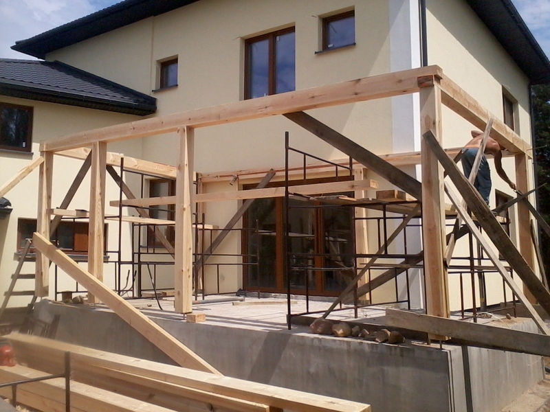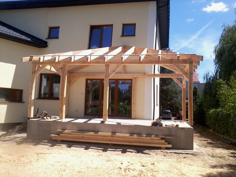 rze?biona i heblowana konstrukcja zadaszenia nad tarasem (Mi?dzyborów)