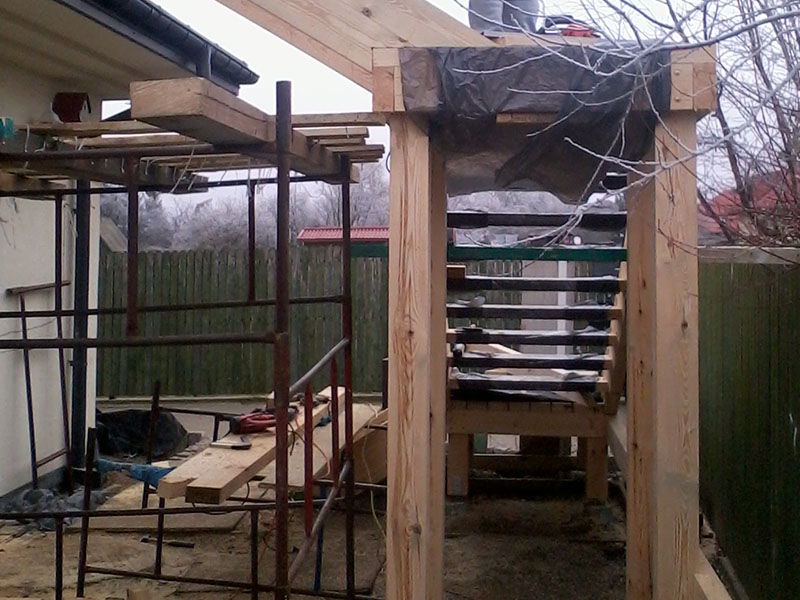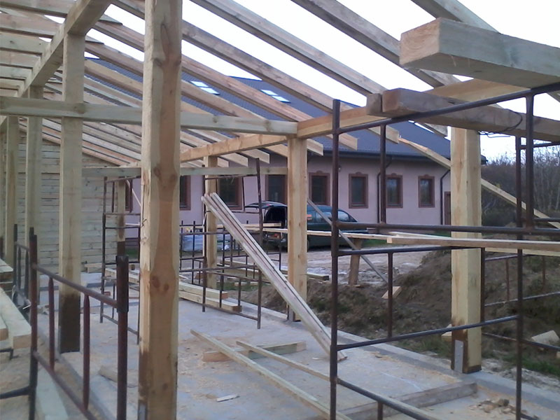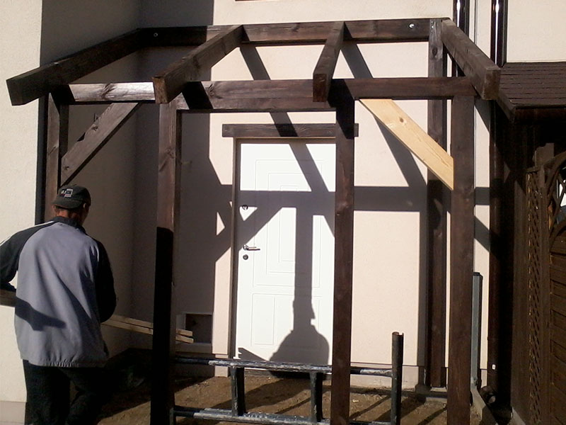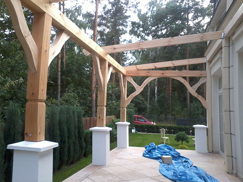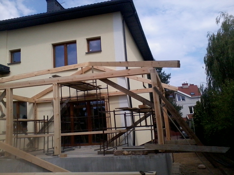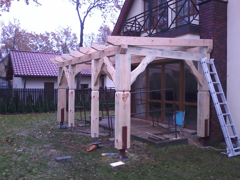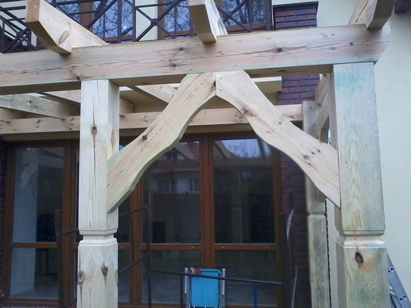 rze?biona i heblowana konstrukcja zadaszenia nad tarasem (Mi?dzyborów)