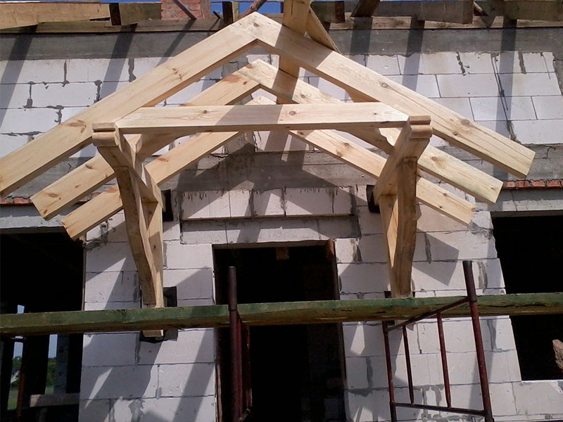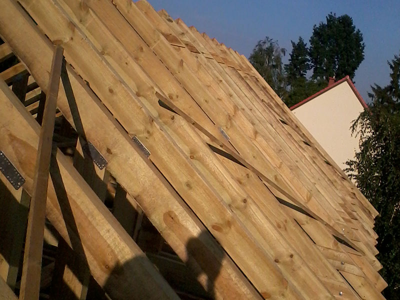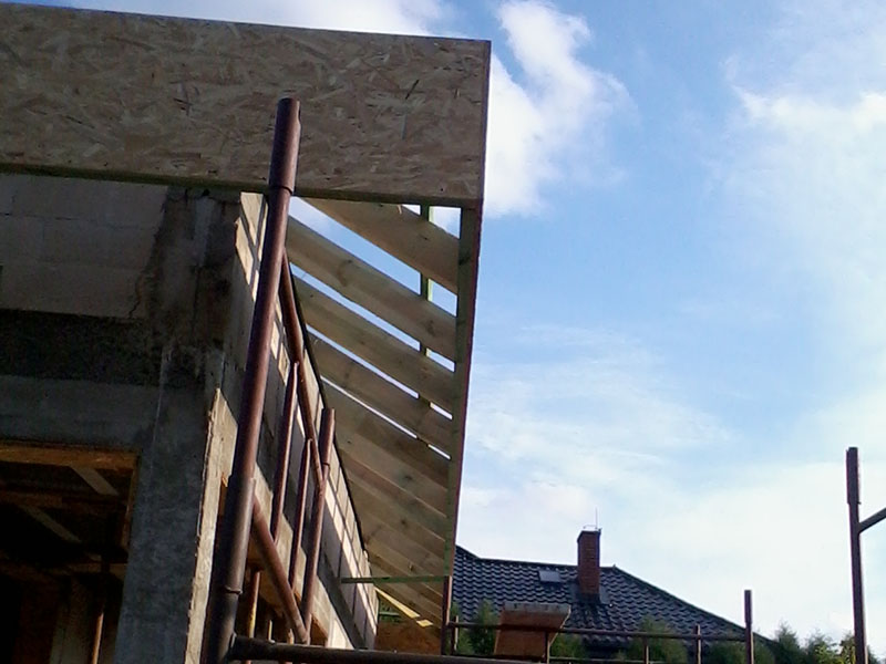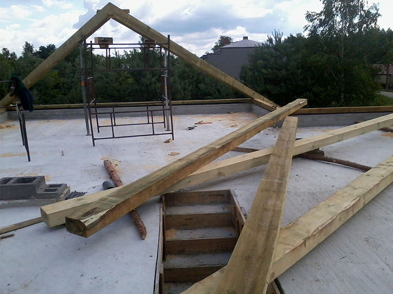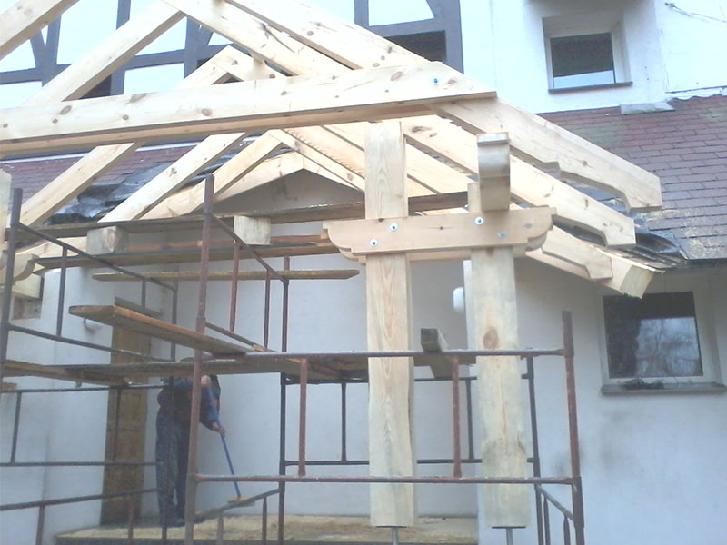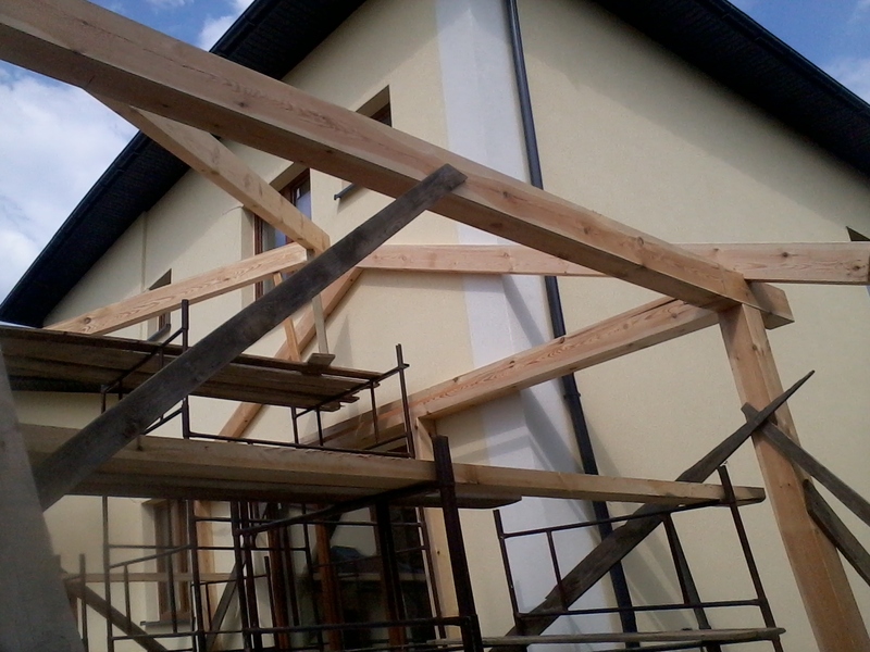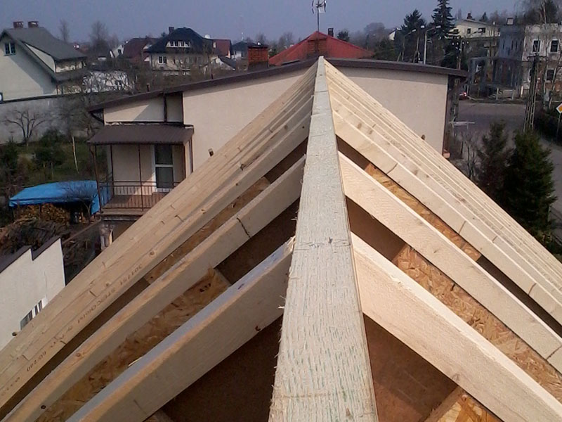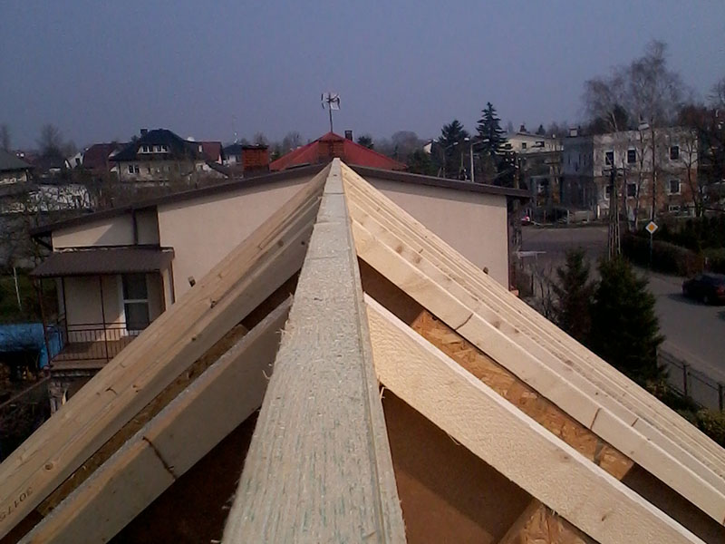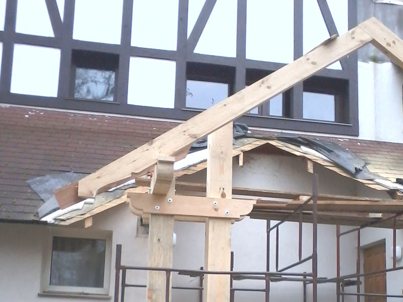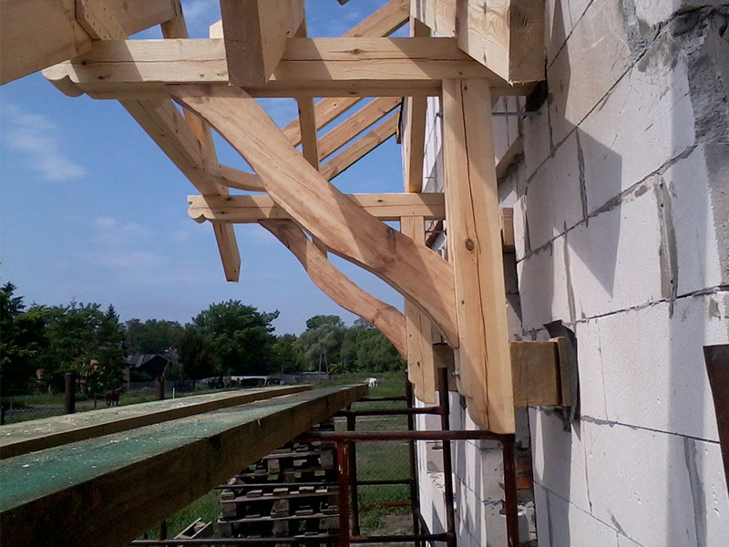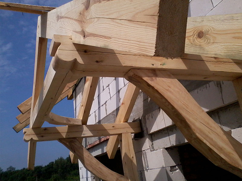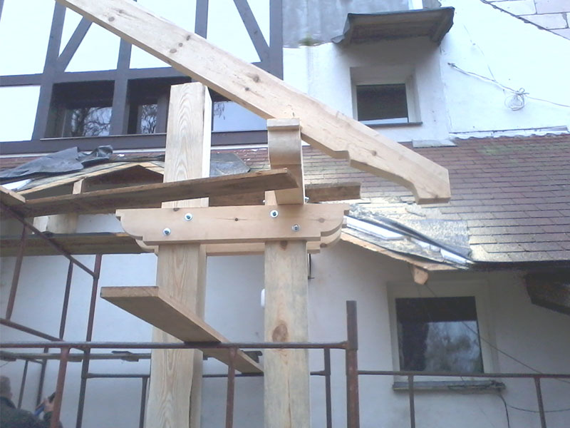 wstawienie heblowanego i rze?bionego zadasznia w gotowym dachu