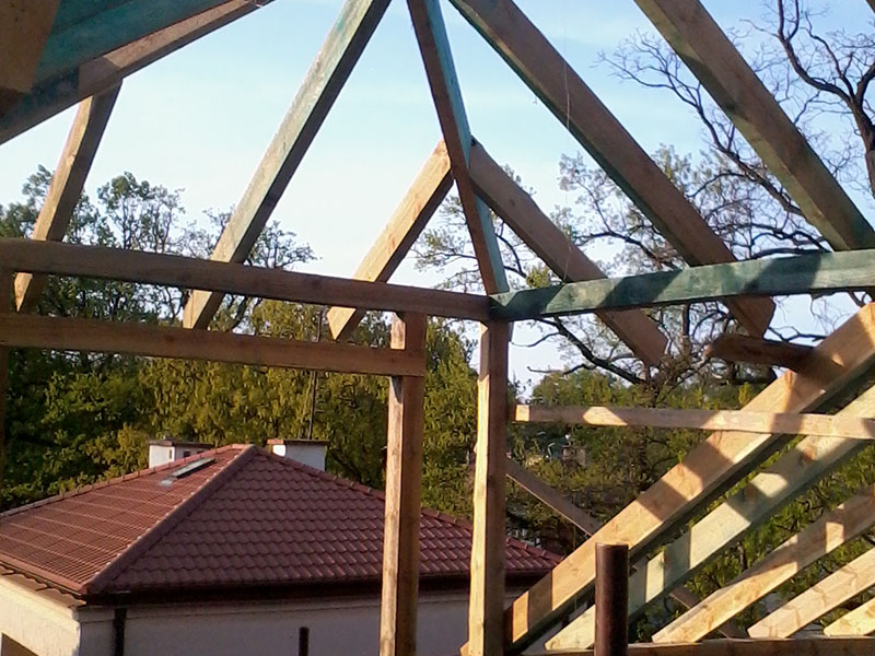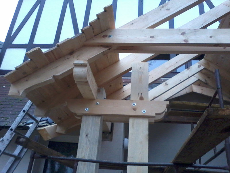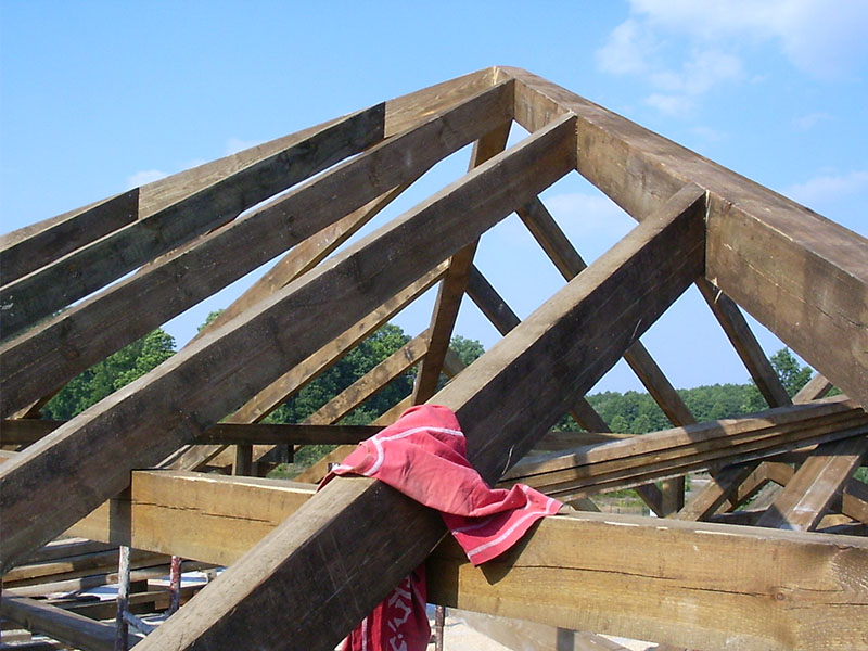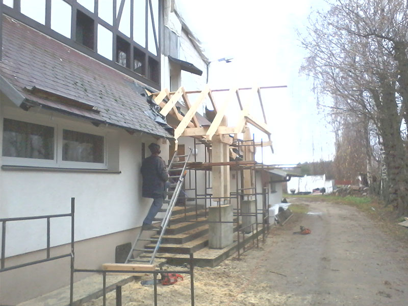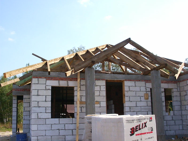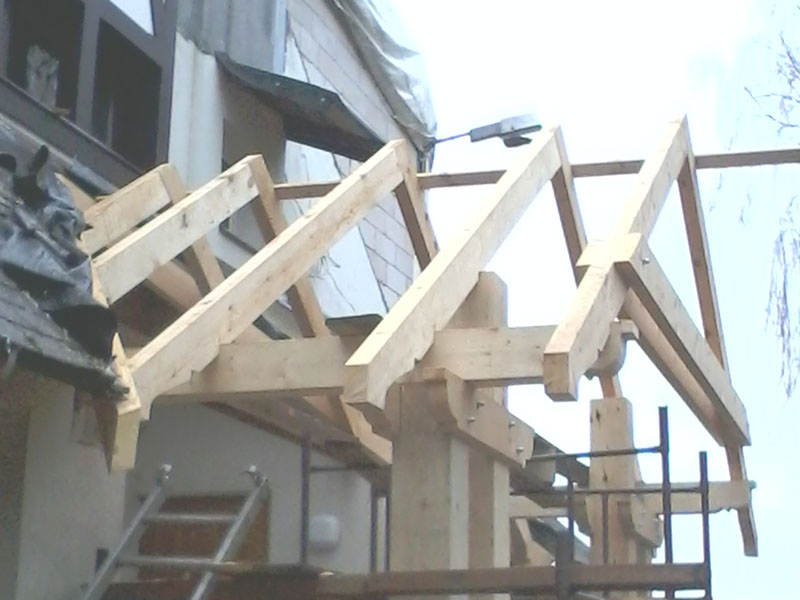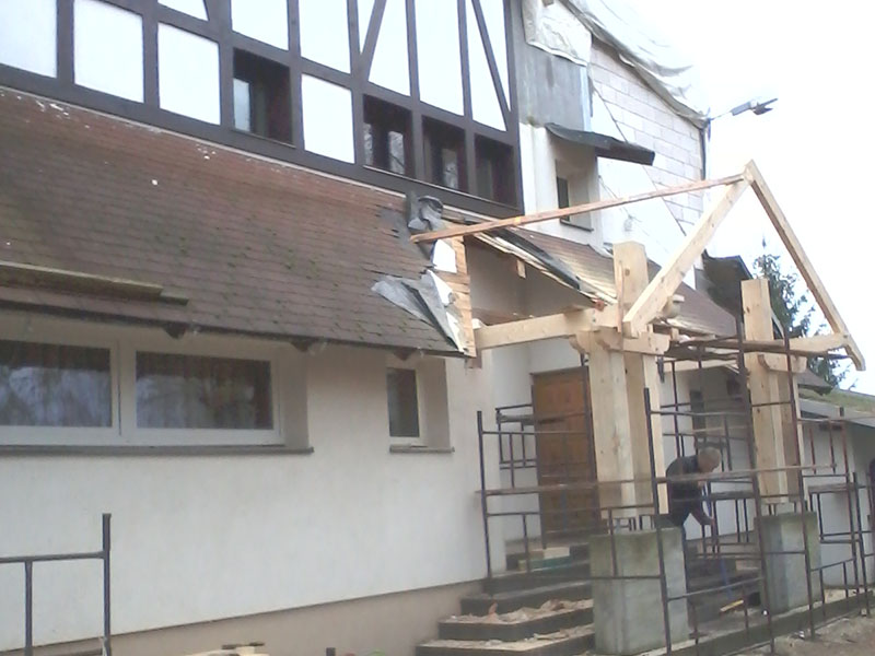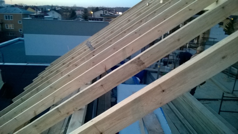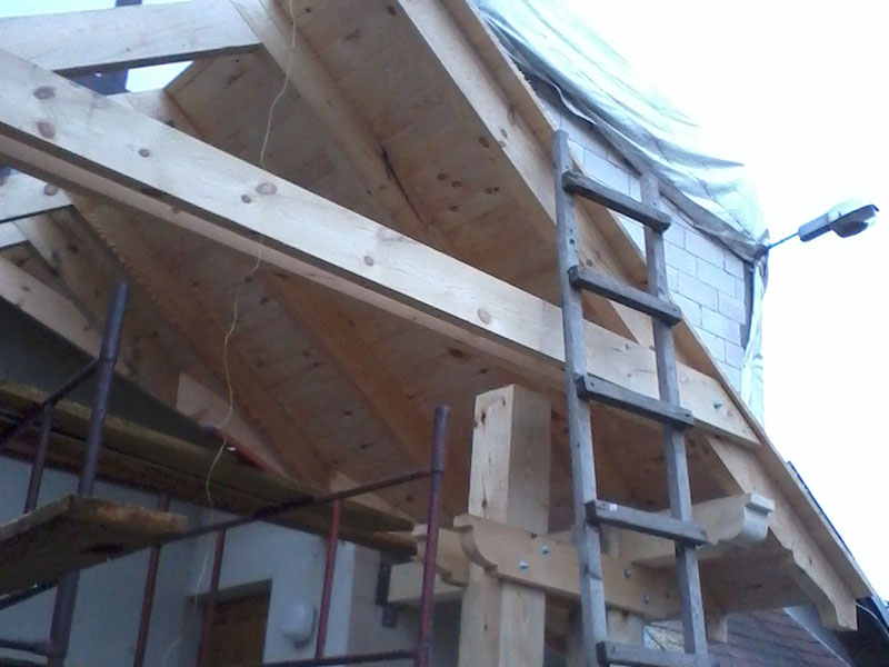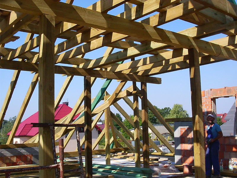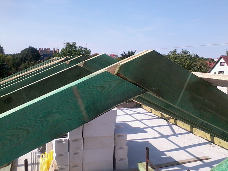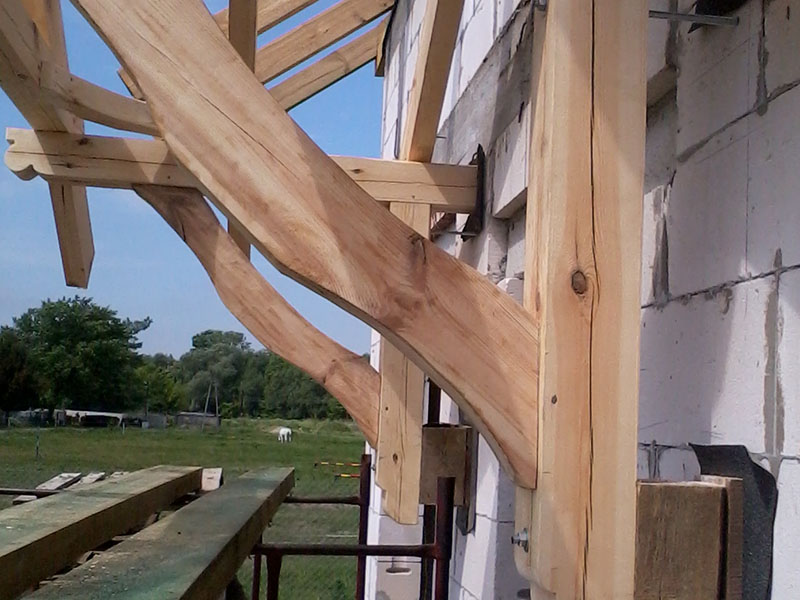 wstawienie heblowanego i rze?bionego zadasznia w gotowym dachu