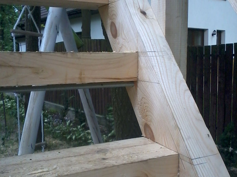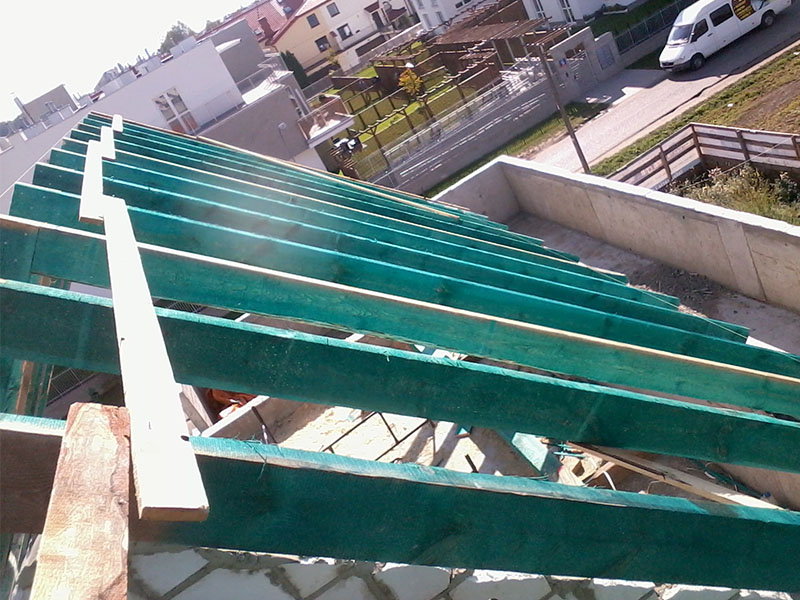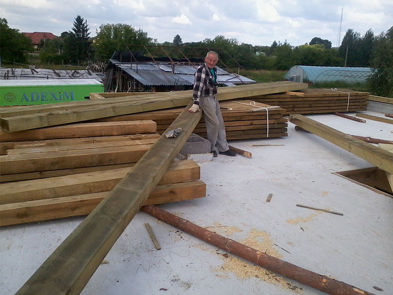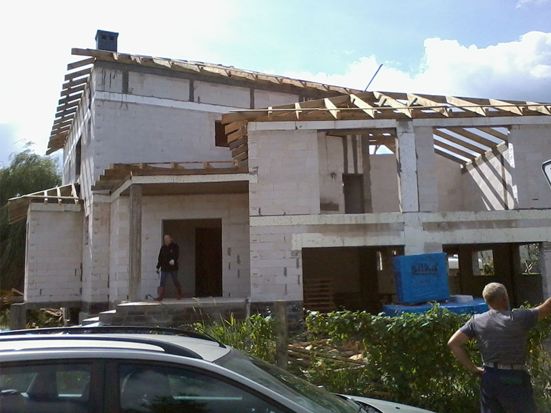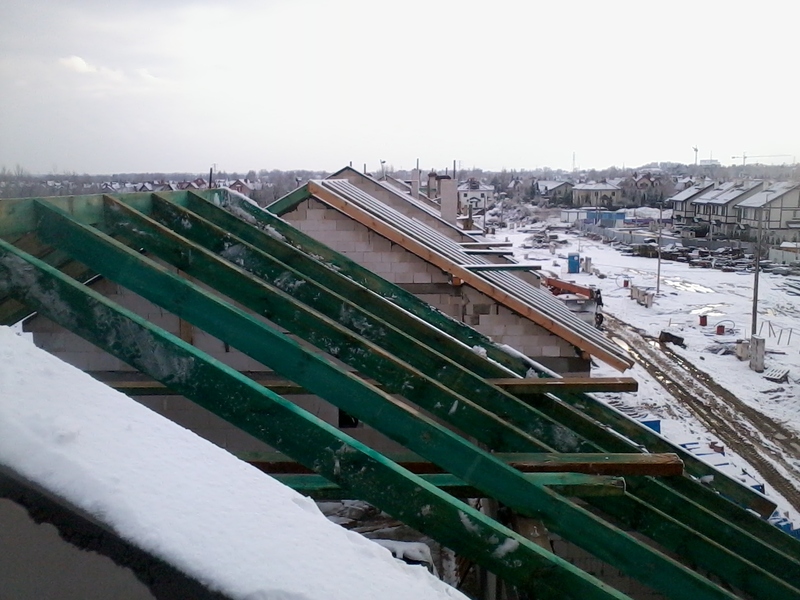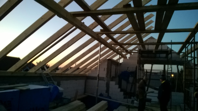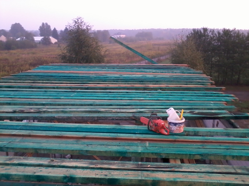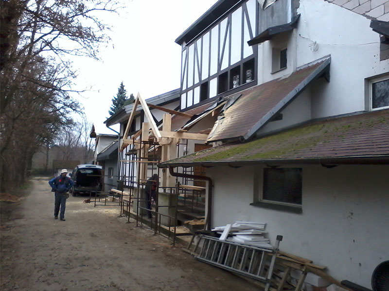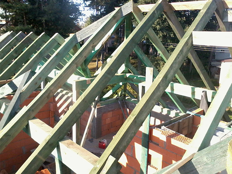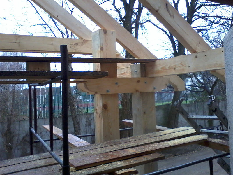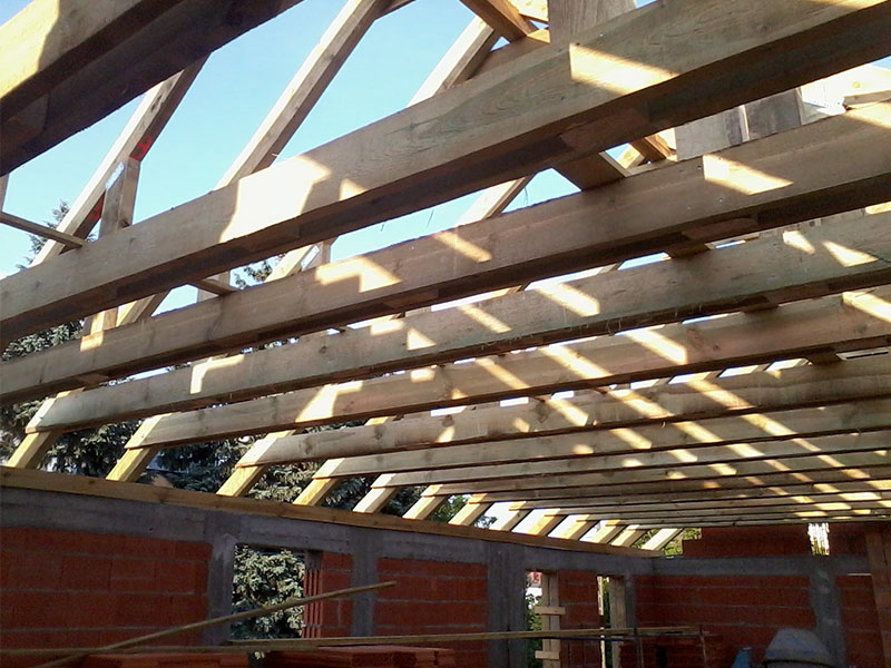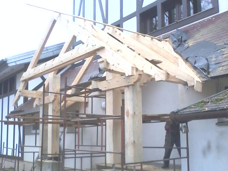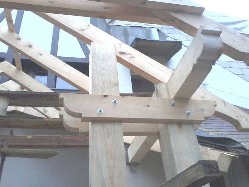wstawienie heblowanego i rze?bionego zadasznia w gotowym dachu
