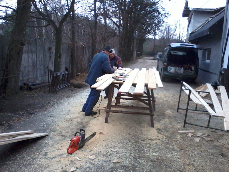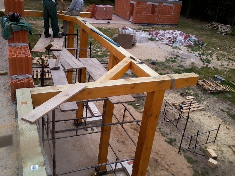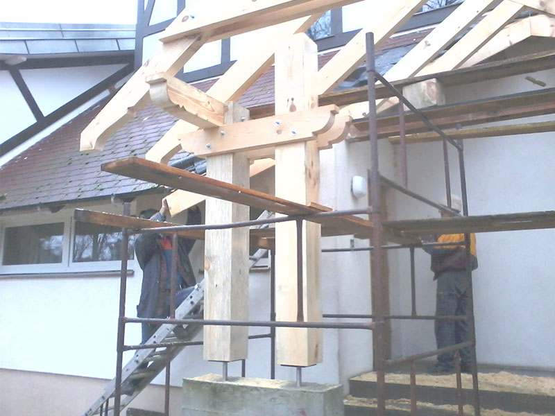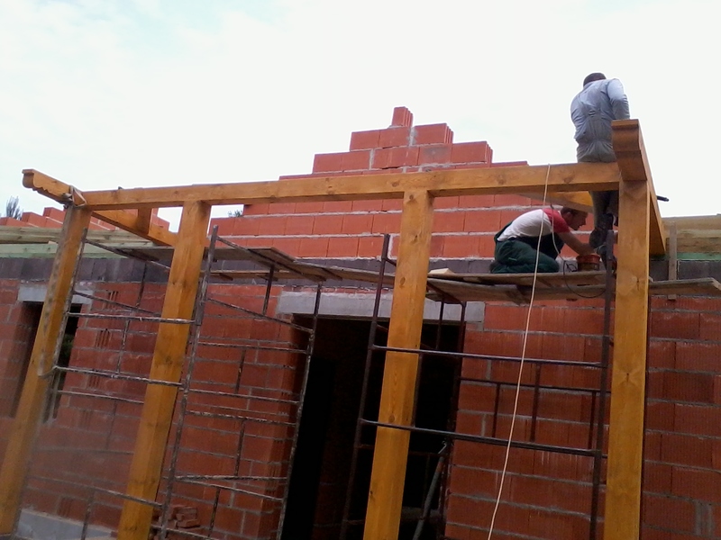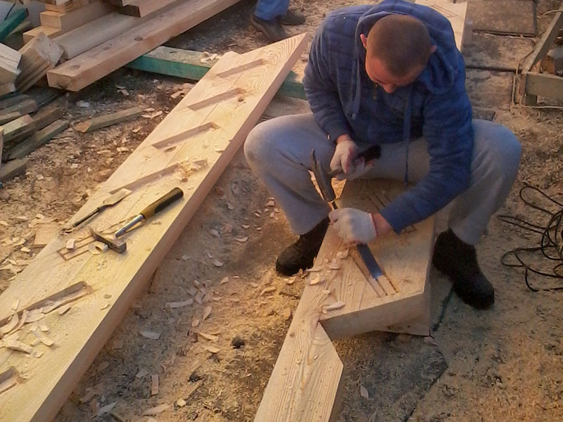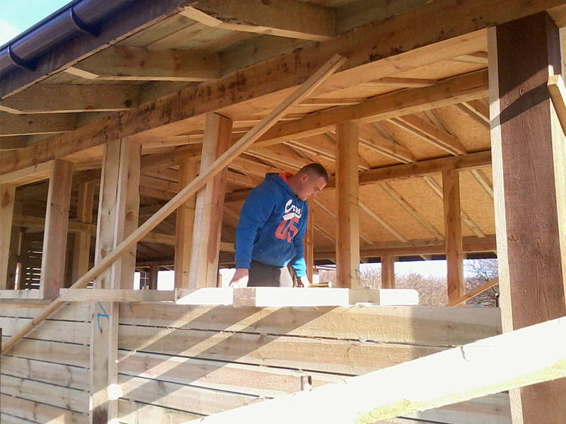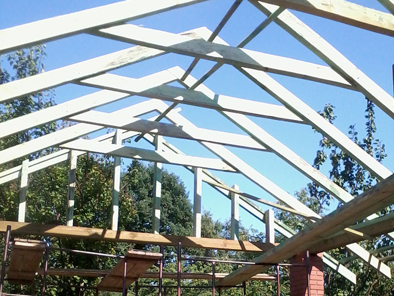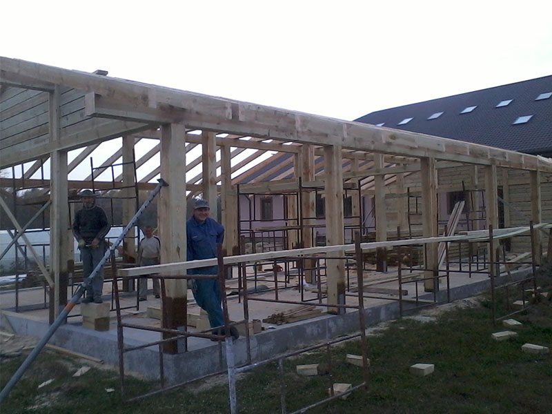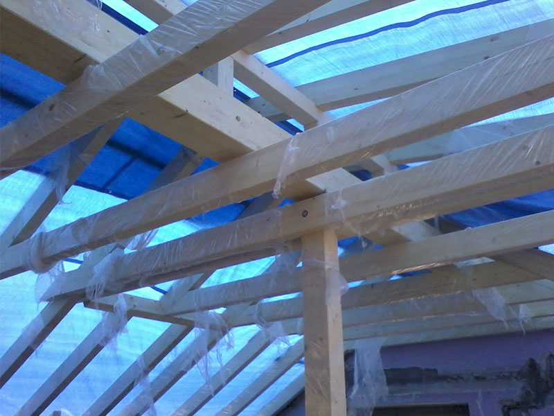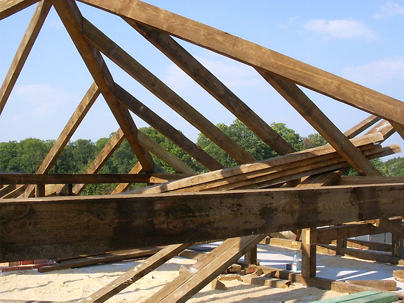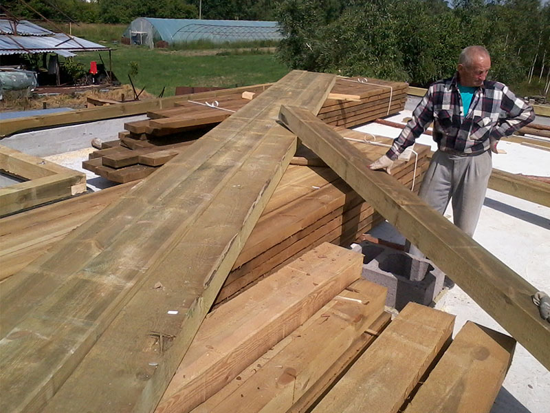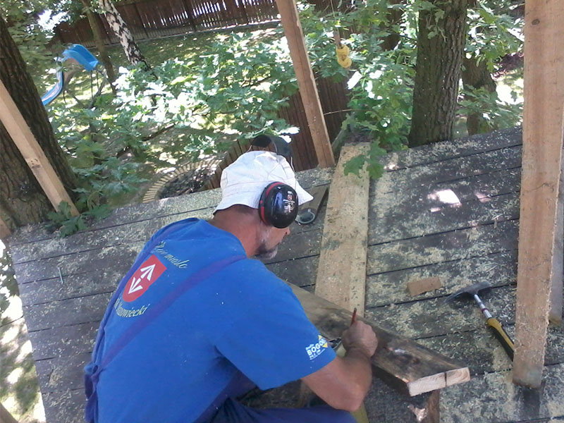 wstawienie heblowanego i rze?bionego zadasznia w gotowym dachu