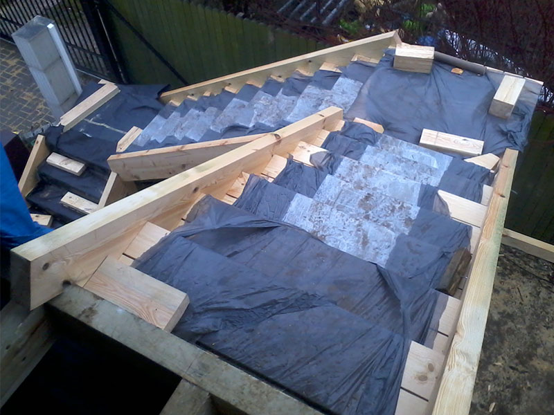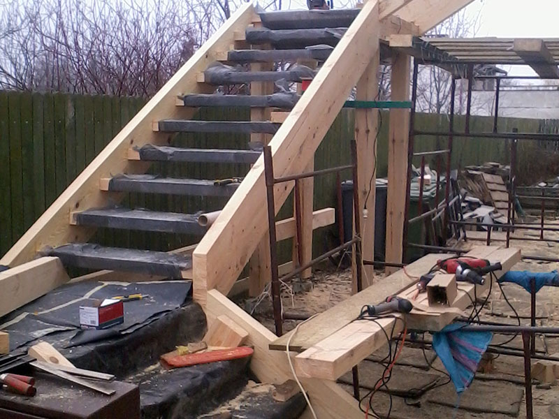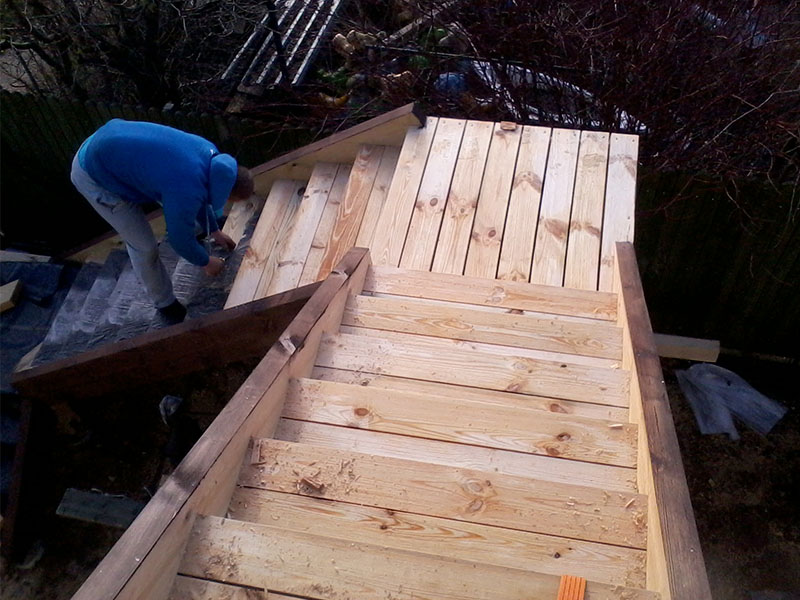 konstrukcja drewanianych heblowanych zewn?trznych schodów