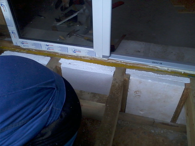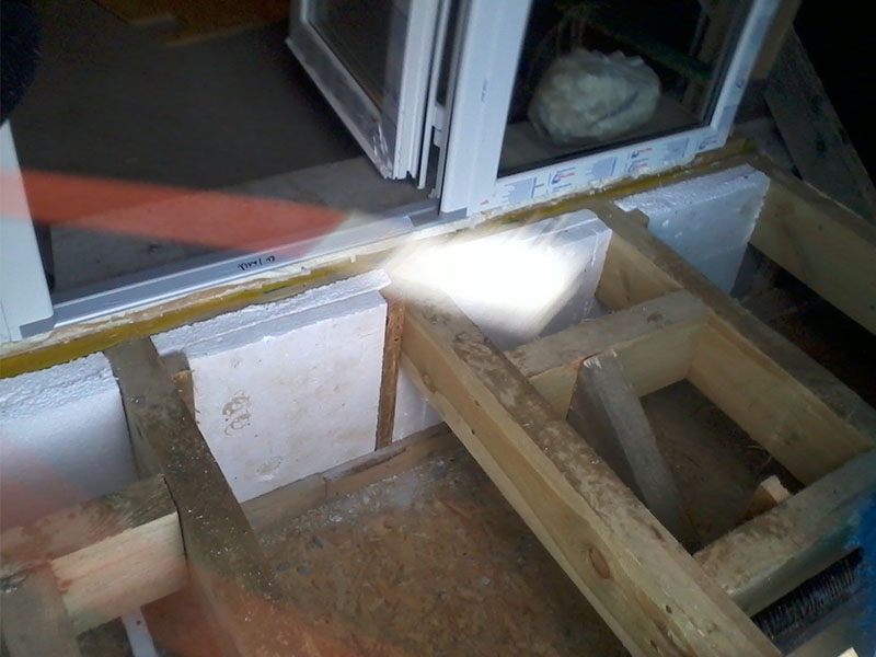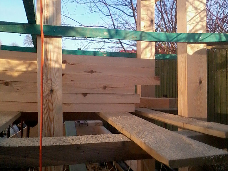 konstrukcja drewninanego heblowanego balkonu, docieplenie przed deskowaniem