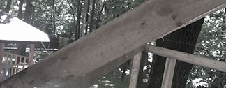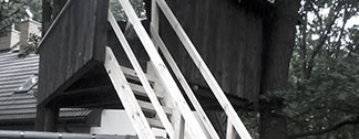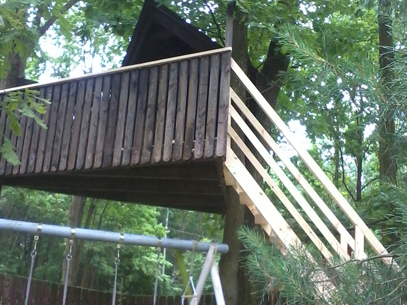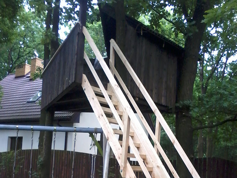 drewniany domek na drzewie - drewniane heblowane schody