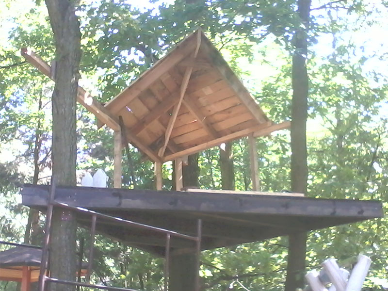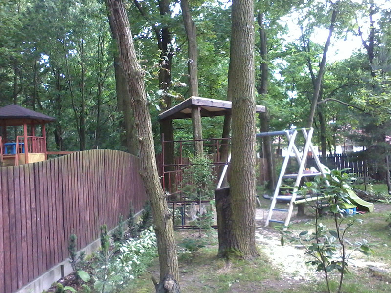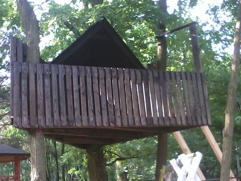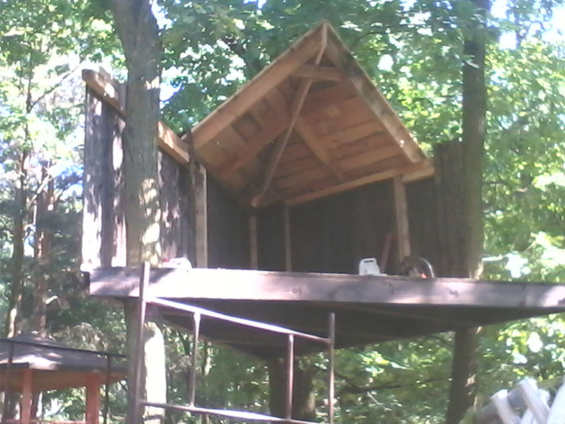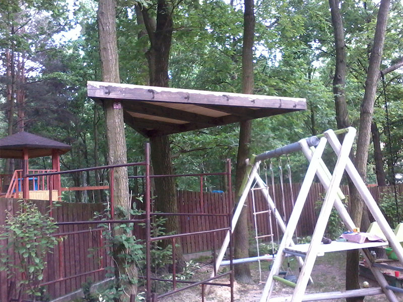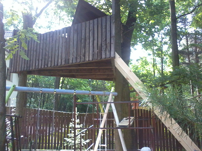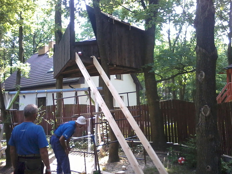 drewniany domek na drzewie - po deskowaniu