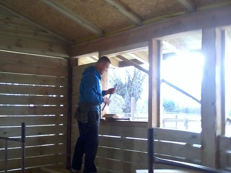 drewniany domek na drzewie - po deskowaniu ?cianek