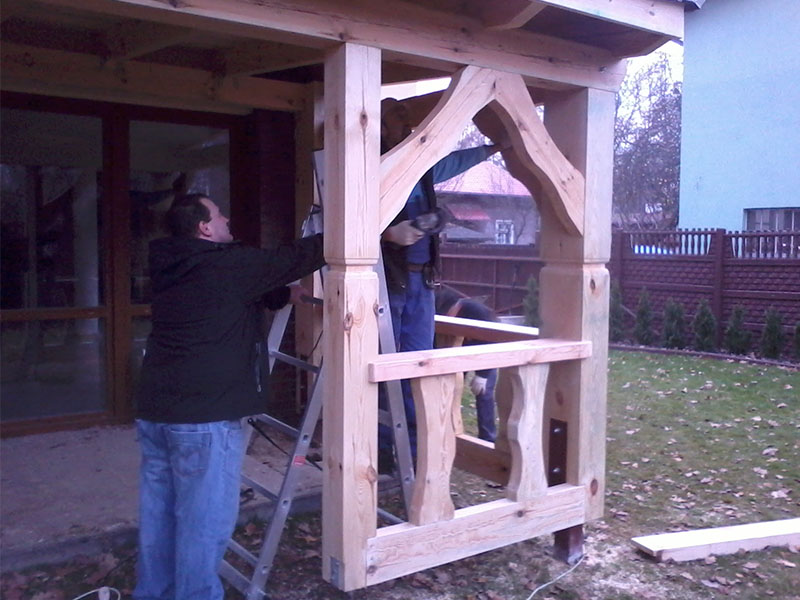 drewaniana rze?biona i heblowana konstrukcja przydomowa