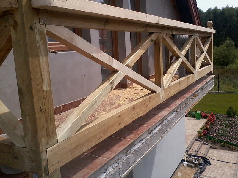 drewaniany rze?biony i heblowany balkon