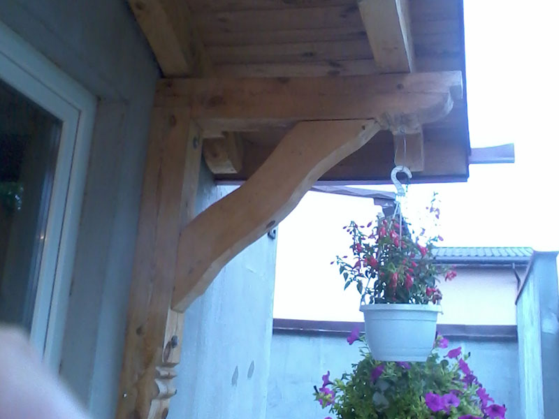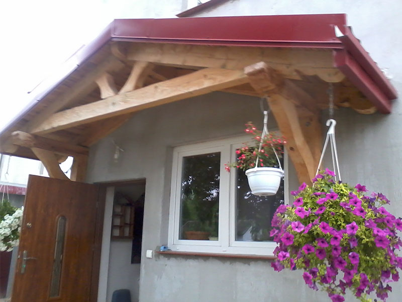 rze?biony i heblowany drewniany daszek nad wej?ciem