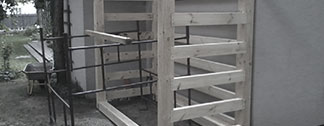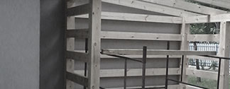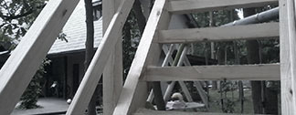 konstrukcja drewanianych heblowanych zewn?trznych schodów z balkonem